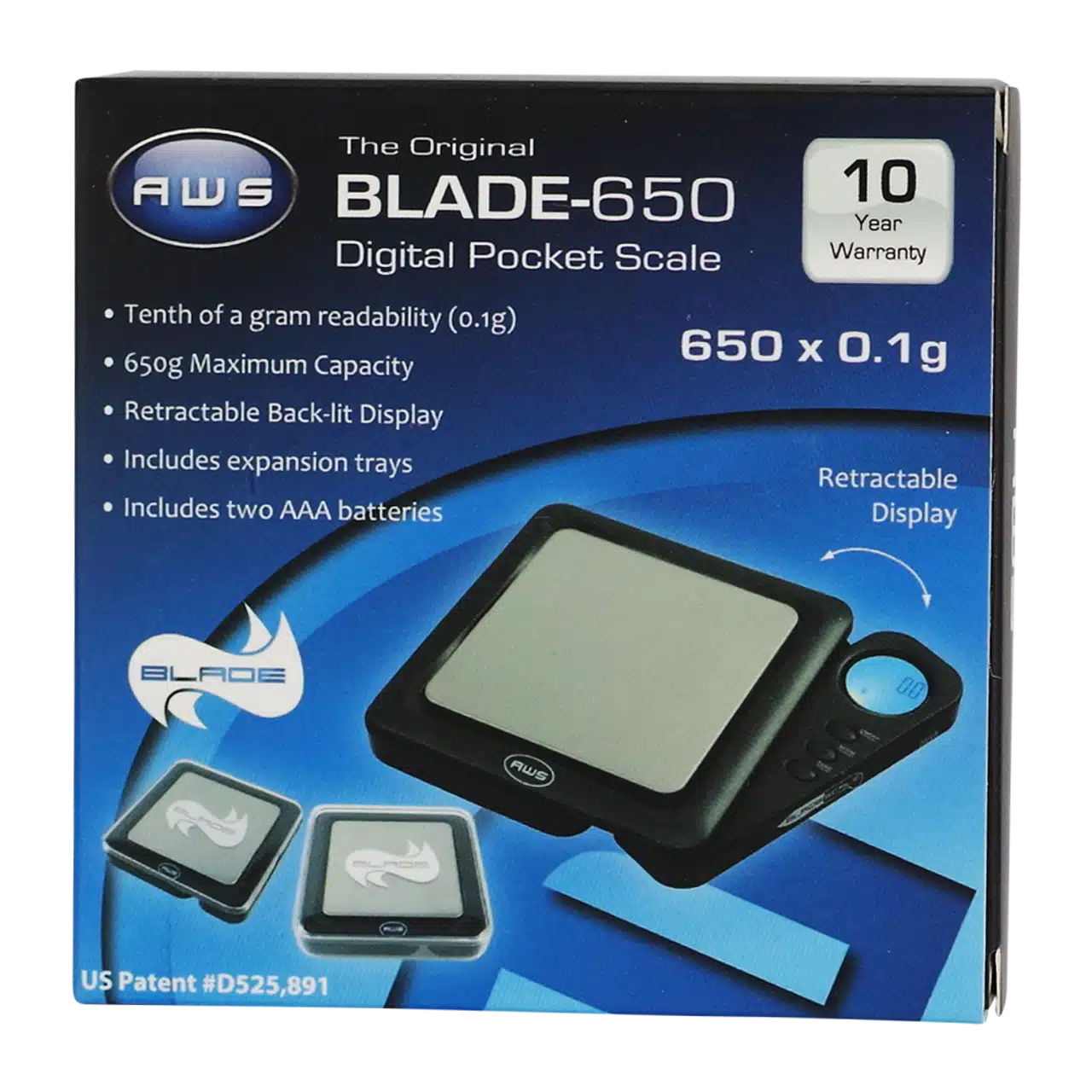This American Weigh Scale has a tenth of a gram readability ( 0.1 g / 0.01 oz / 0.01 ozt / 0.1 dwt ) with a 650 g maximum capacity ( 22.93 oz / 20.90 ozt / 417.9 dwt ). Retractable back-lit display. Comes with expansion trays, two AAA batteries and a limited 10 year warranty. Platform measures 2.7” x 2.7”.