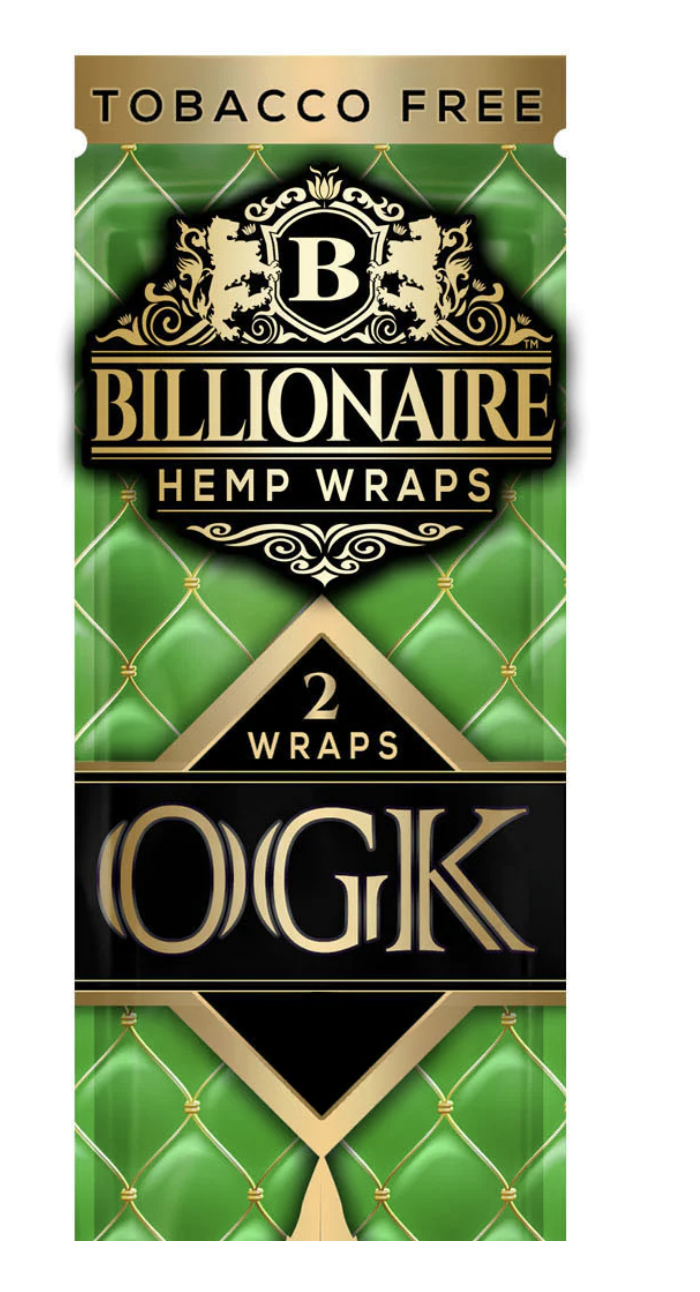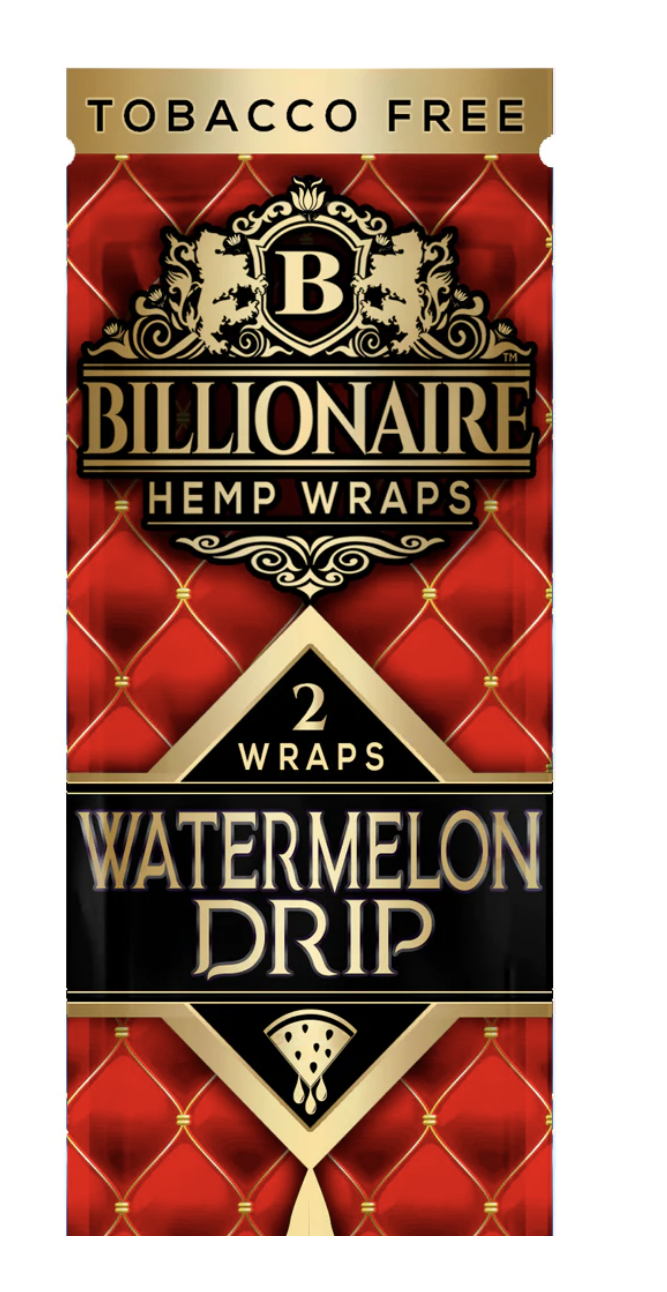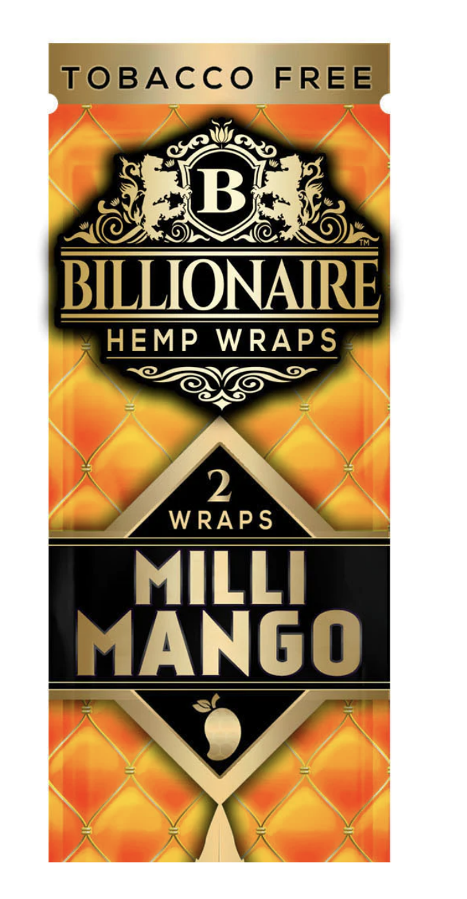 | Billionaire Wrap Flavors | Baldacci Black, Baldacci Gold, Ballin' Blueberry, Banana Cream, Majestic Grape, Milli Mango, Natural, OGK, Peaches & Cream, Pink Lemonade, Poppin' Bubblegum, Russian Cream, Sweet Stacks, Watermelon Drip |