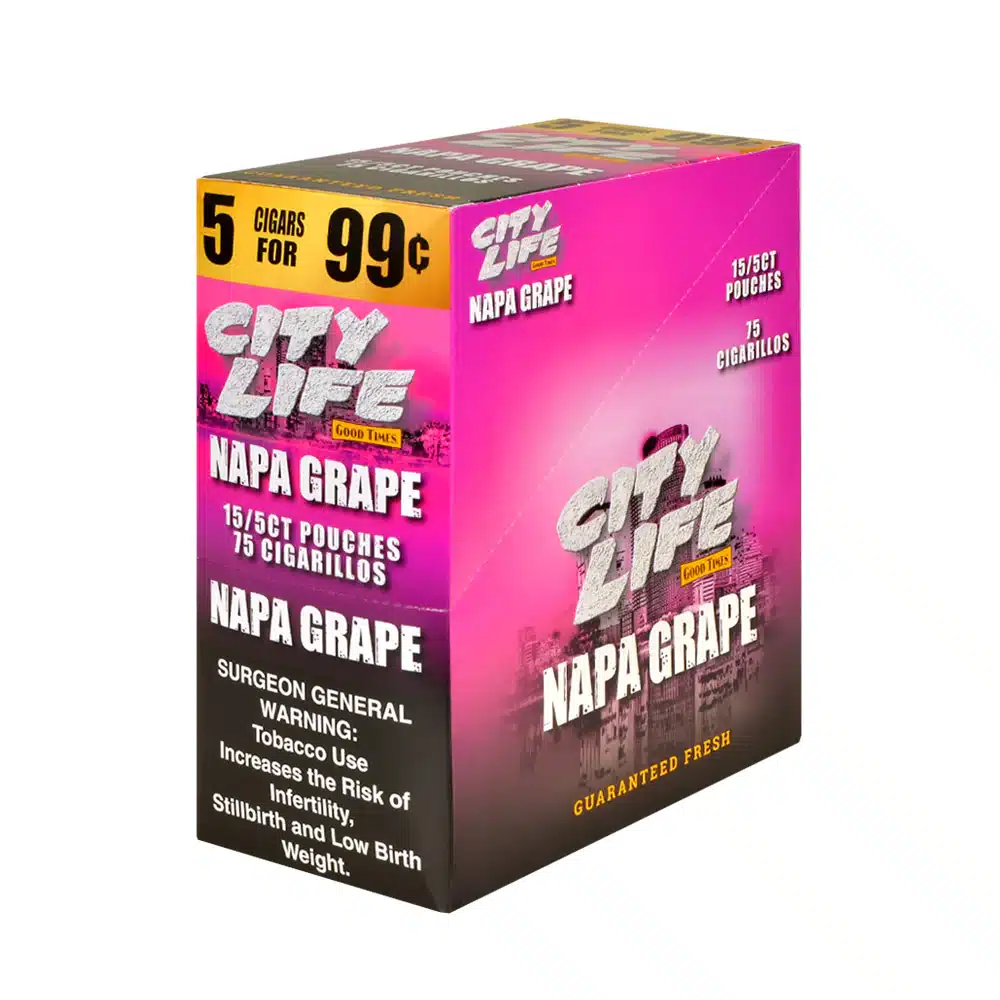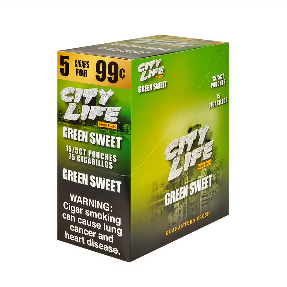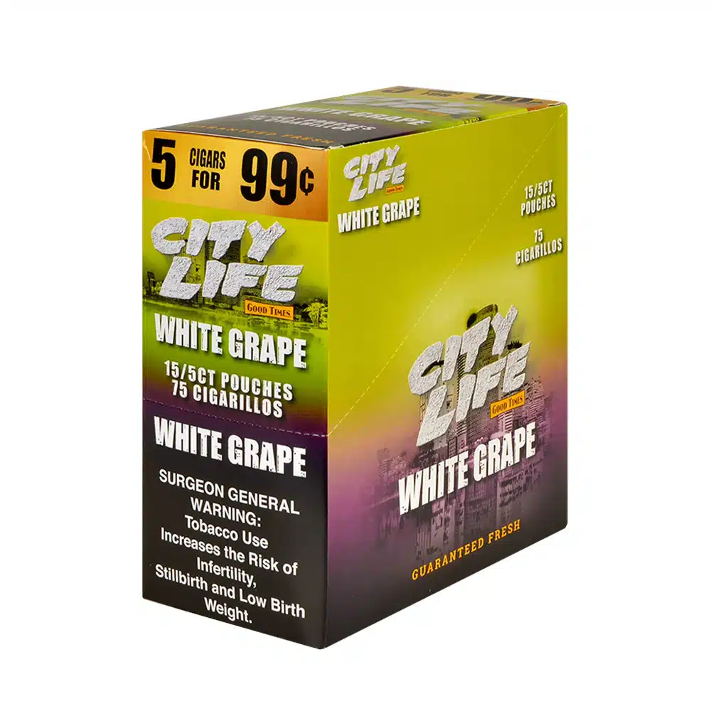 City Life cigarillos are produced with all-natural, hand-selected homogenized tobaccos leaves grown exclusively in the Dominican Republic. Once harvested, each cigarillo style by City Life is crafted together by machine from the signature blends of these premium tobaccos. To finalize this process, special sweet and natural flavorings are infused into the mixture, giving each cigar its own unique taste and perception. Distributed by Good Times USA, City Life cigarillos are one of the best values in the market today. They are considered very mild, sweet and exotic, perfect for any cigar connoisseur who enjoys a good and flavorful smoke.