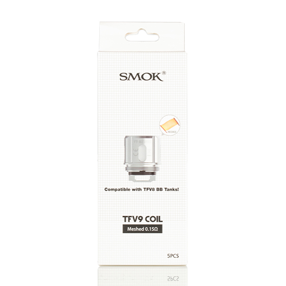 Discover the SMOK TFV9 Replacement Coils, a set of 0.15ohm Mesh threaded coils for the new SMOK TFV9 Sub-Ohm Tank.