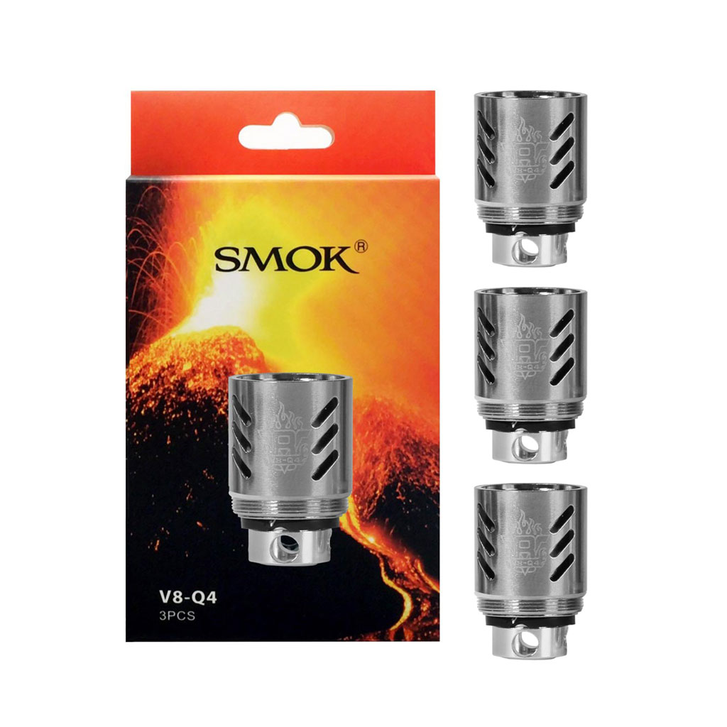 SMOK’s patented replacement V8-Q4 coil heads bring a unique design to the ever-growing list of replacement heads for the TFV8. This 0.15 ohm Quadruple coil configuration is wicked with Pure Organic Cotton and has an operational wattage between 50-180W (best between 90-150W). Although these heads are technically rated as the least powerful of the TFV8 bunch, the fact remains that this is a high-powered quadruple coil setup. Experience better flavor with Smok’s V8-Q4 replacement coil heads today!
