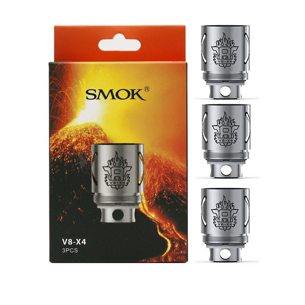 V8-X4 quadruple core only can work in smoke TFV8 atomizer only, resistance is 0.15ohm, double-barreled pistol design and vertical 4 cores building, large wicking holes to ensure the best airflow, the organic cotton will give you the pure flavor, it’s cloud and flavor balance coil, can work at 60W to 150W, best work at 80W to 120W.